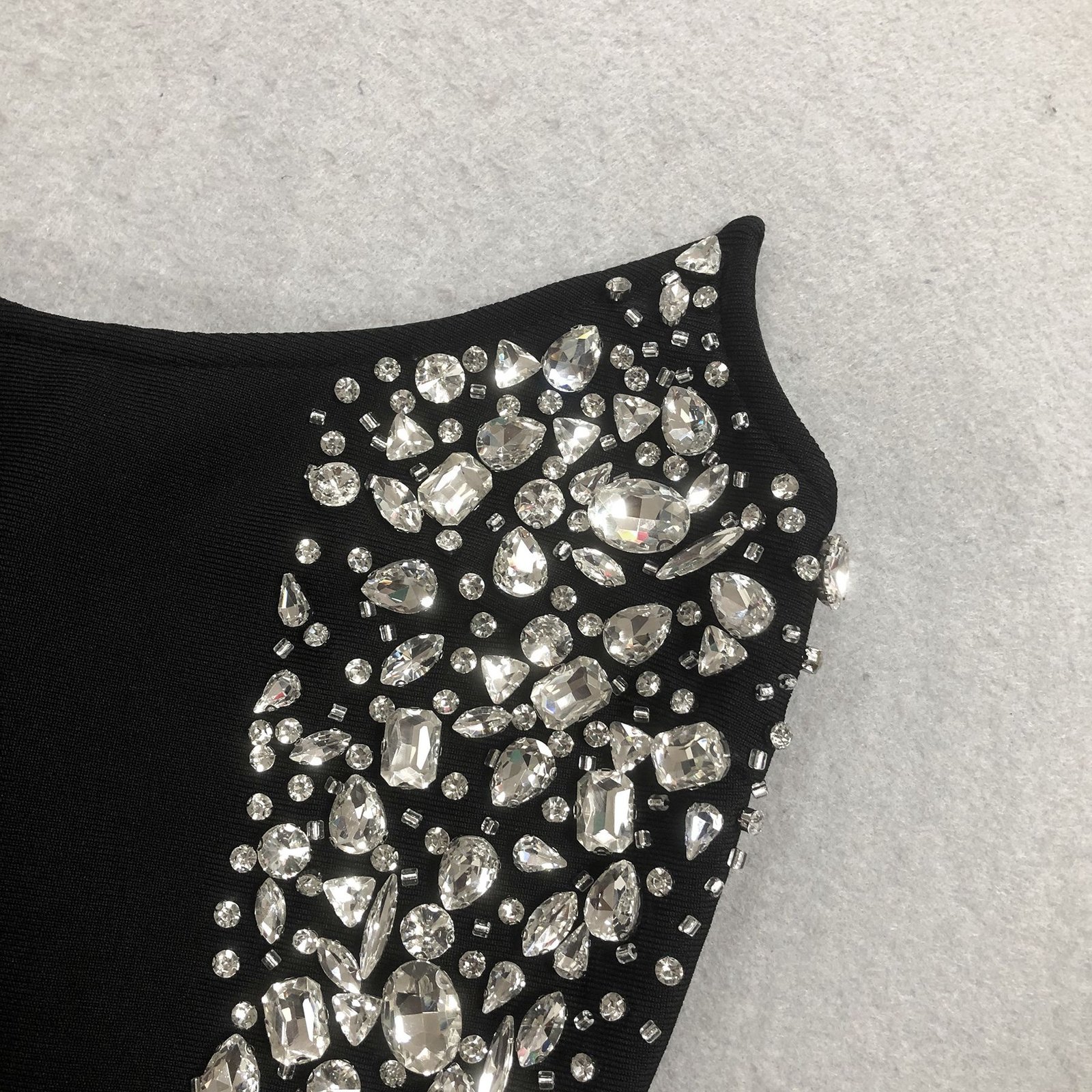 Con su combinación de negro clásico y brillos de alta calidad, este diseño se convierte en una prenda imprescindible para destacar con estilo y glamour en cualquier ocasión.
