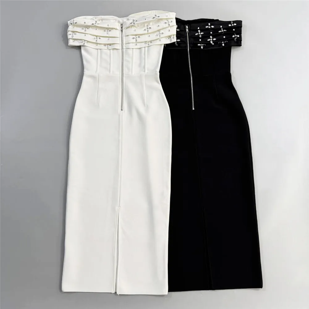 El corte midi ajustado aporta modernidad y versatilidad, creando un equilibrio perfecto entre sensualidad y elegancia. Está disponible en dos tonos atemporales: