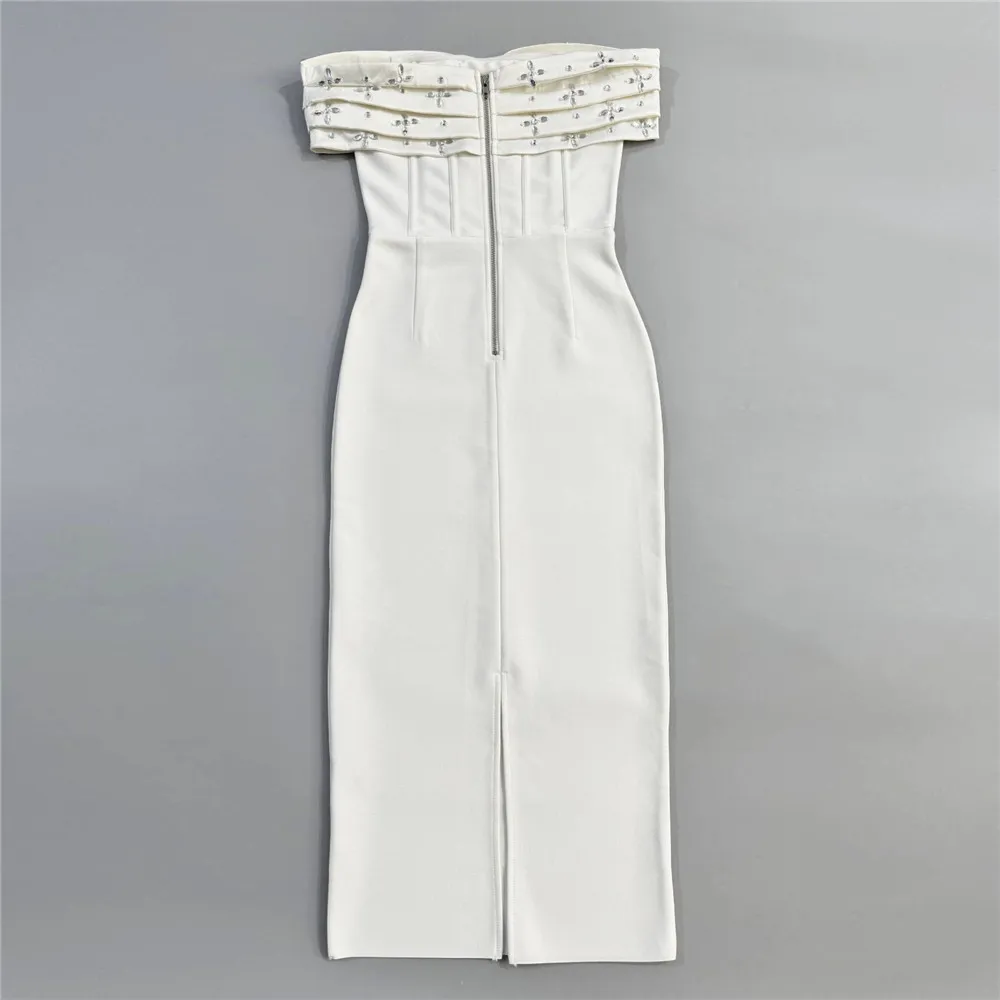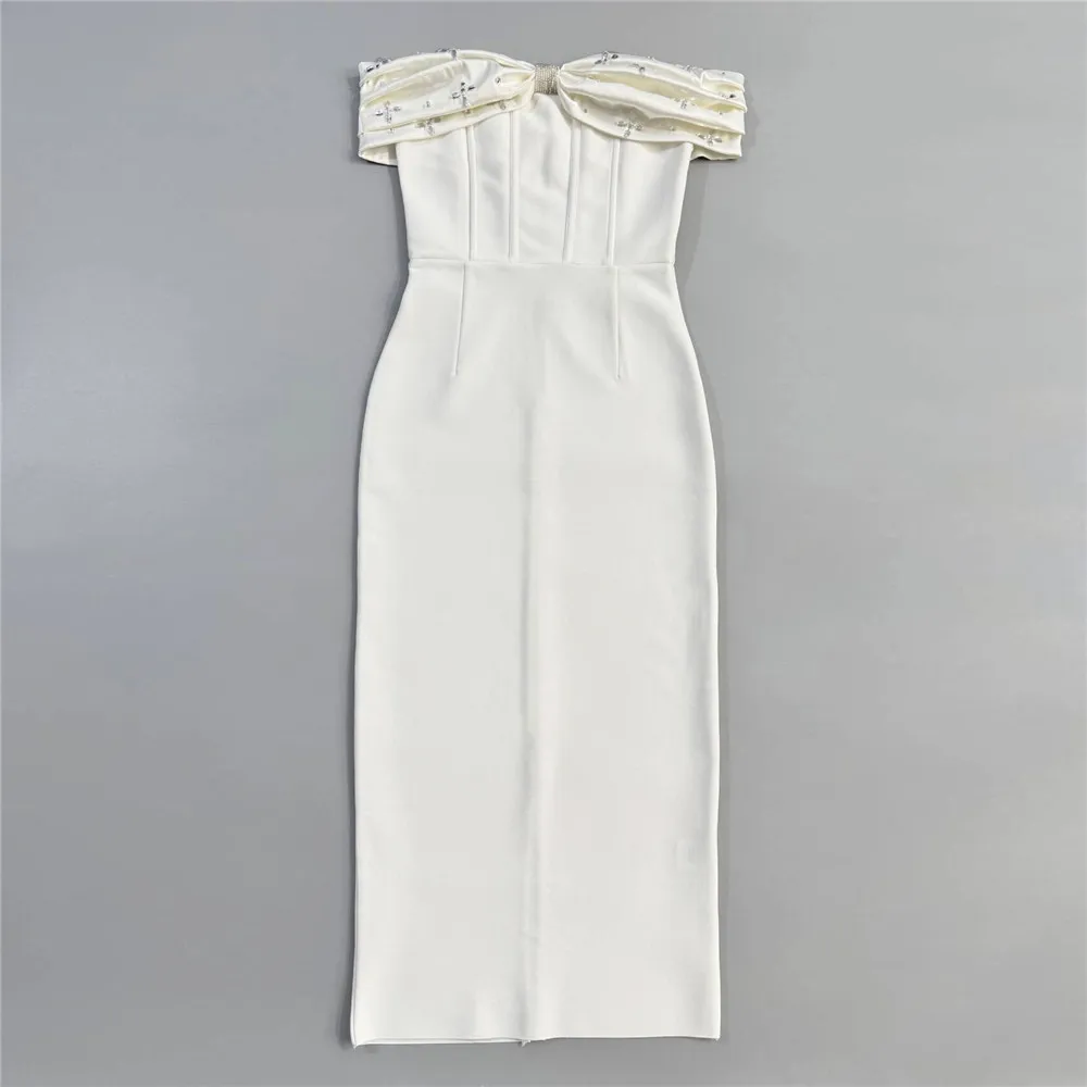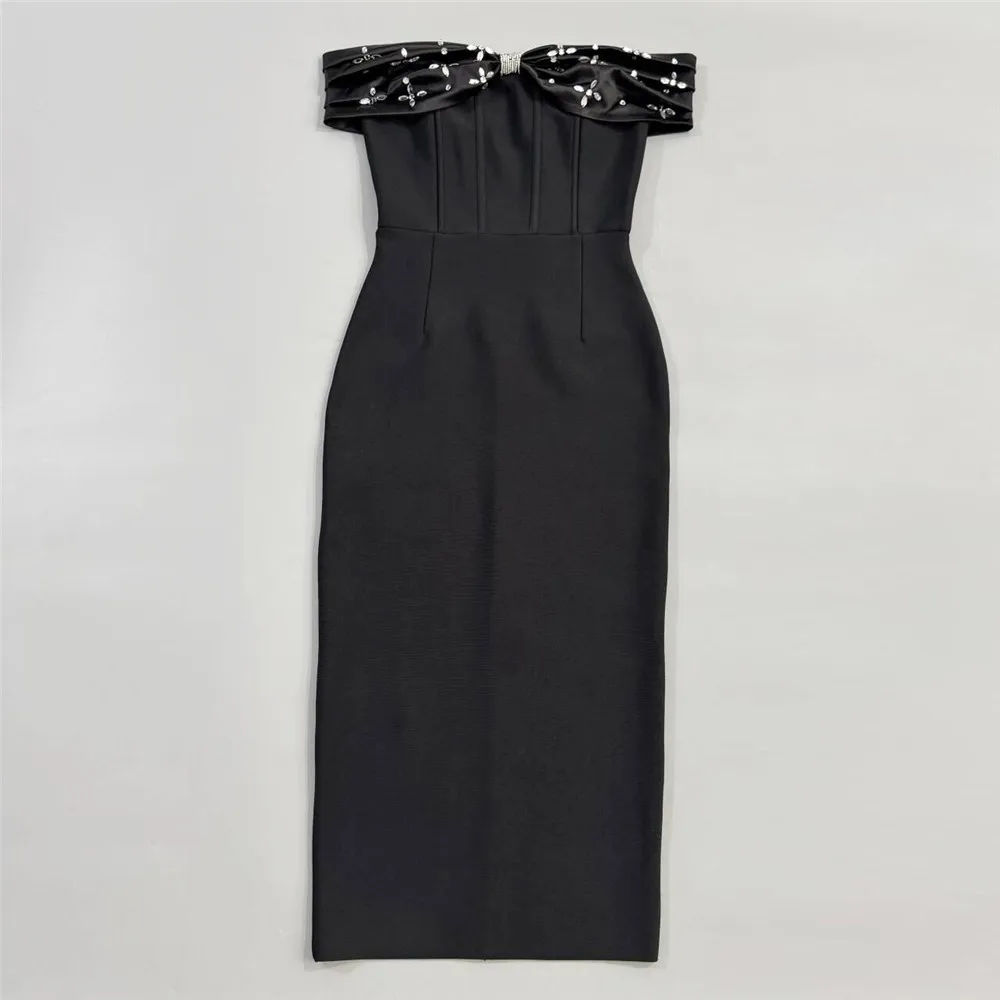 Este vestido bandage midi off shoulder es una pieza diseñada para resaltar la figura con sofisticación y estilo. Confeccionado en tejido bandage de alta compresión, moldea el cuerpo y aporta una silueta definida y elegante.